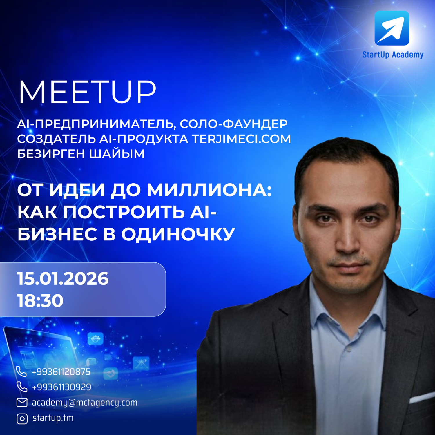 The meetup will take place on December 10, 2025, at 18:30, at Ish Nokady, Arkach. This is a great opportunity to gain practical tools, ask questions directly, and connect with other members of the local startup ecosystem. Due to technical issues, registration will be available only via SMS at +993 61 130929.