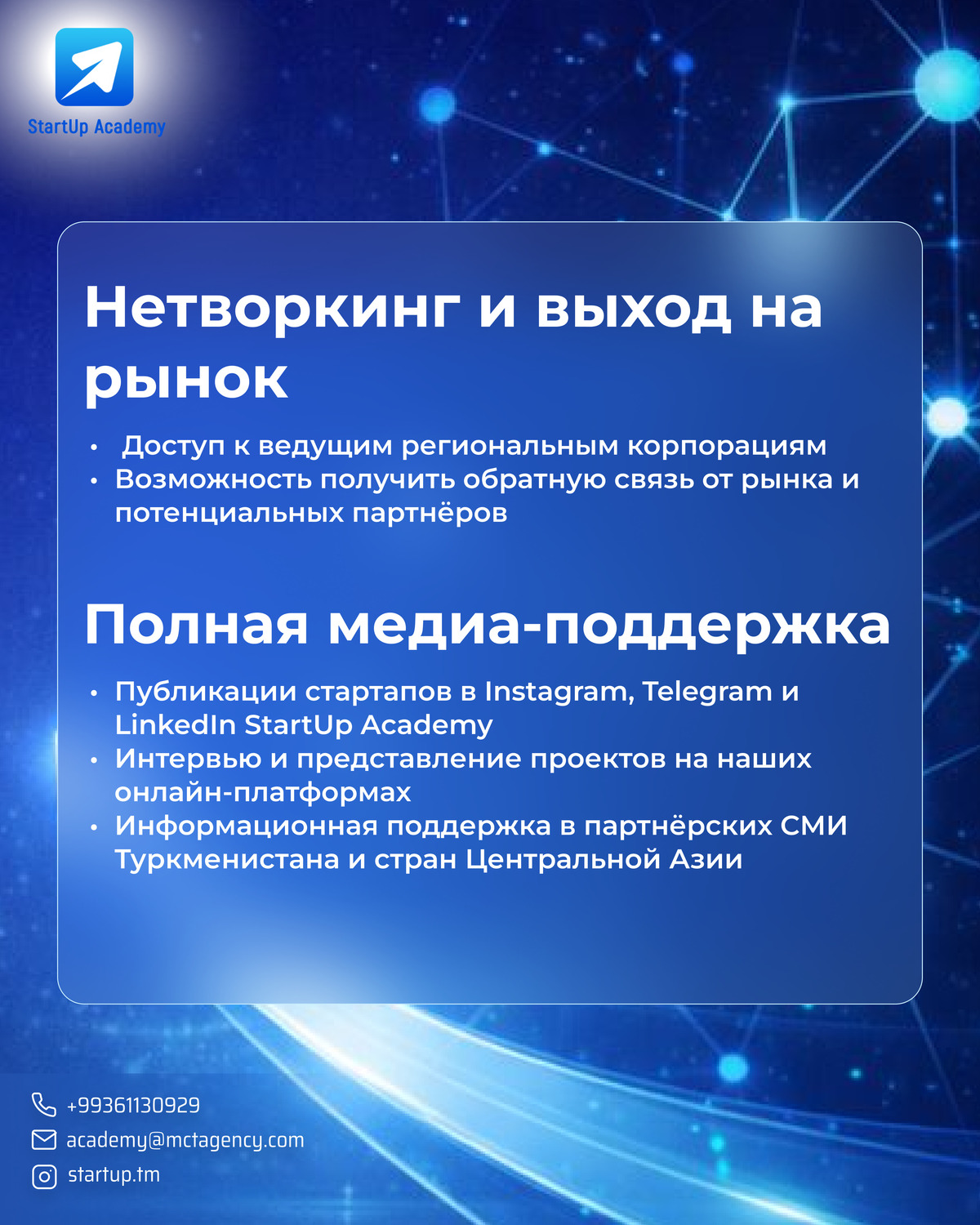 Нетворкинг с корпорациями и игроками рынка позволяет получить обратную связь, протестировать решения и выйти на новых клиентов. Медиа-поддержка усиливает видимость стартапов через публикации, интервью и партнёрские СМИ, помогая привлекать внимание рынка и инвесторов.