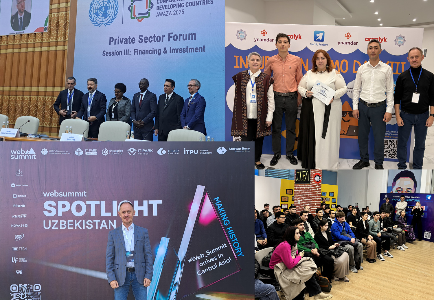StartUp Academy halkara we sebitleýin çärelerde işjeň gatnaşdy. “Ylym, tehnologiýa we parahatçylyk - durnukly ösüşe barýan ýol” atly halkara maslahatynyň we ýörite seminarlaryň çäginde Germaniýadan maýa goýujy we telekeçi Timo Beý çykyş etdi. Akademiýa Daşkentde geçirilen ICT Week 2025-e gatnaşdy, GITEX Caucasus & Central Asia-nyň resmi hyzmatdaşyna öwrüldi, şeýle hem International Startup Forum-da we Turkmentel 2025 sergisinde görkezildi. Bu çäreleriň çäginde UNDP bilen bilelikde startap-batllar we sergiler guraldy.
